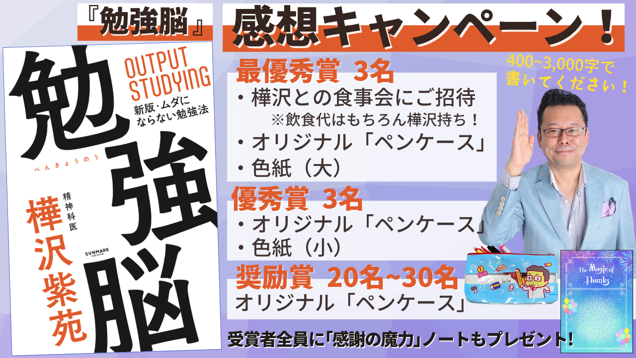 ※当選者の発表は「精神科医・樺沢紫苑 公式メルマガ」内で発表いたします。