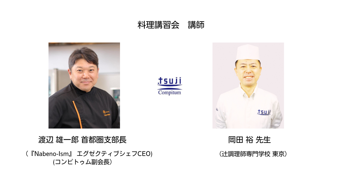・講 師 : 渡辺 雄一郎 首都圏支部長(『Nabeno-Ism』 エグゼクティブシェフCEO、コンピトゥム副会長)、岡田 裕 先生(辻調理師専門学校 東京)