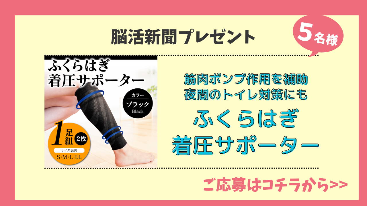 8月の脳活新聞プレゼントは「ふくらはぎ着圧サポーター」です。