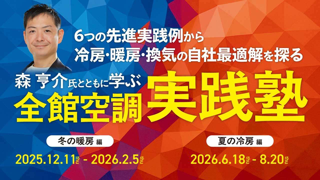 事前説明会:2025年9月26日(金) <冬の暖房編> 第1回:2025年12月11日(木)(神奈川県横浜市) 第2回:2026年1月15日(木)(岐阜県岐阜市) 第3回:2026年2月5日(木)(東京都町田市) <夏の冷房編> 第4回:2026年6月18日(木)(愛知県一宮市) 第5回:2026年7月16日(木)(栃木県上三川町/宇都宮市) 第6回:2026年8月20日(木)(愛知県名古屋市) ※スケジュールは変更になる場合がございます。 |