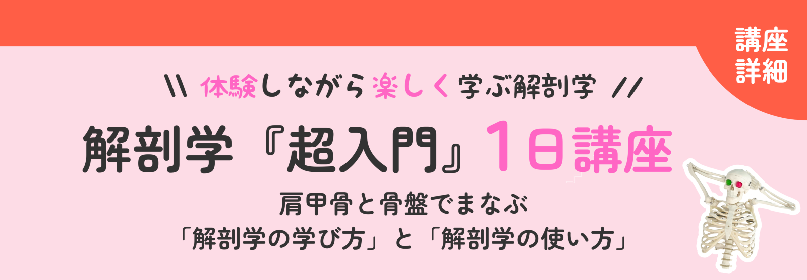 解剖学『超入門』1日講座では、『解剖学の学び方』と『解剖学の使い方』を学んでいきます。
