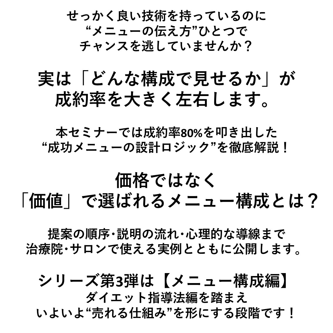 高単価メニューの成約率80%を生み出す㊙ノウハウ公開!〜メニュー構成編〜