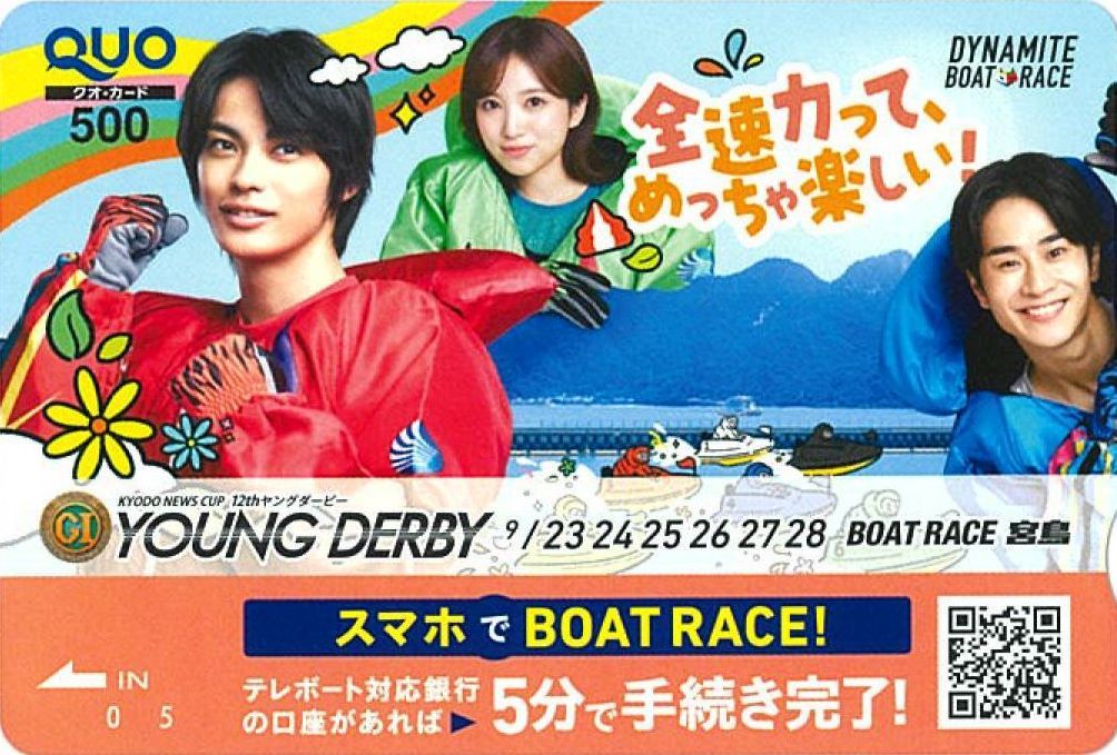 宮島ボートプレミアムGⅠ「第12回ヤングダービー」クオカード プレミアムGⅠ「第12回ヤングダービー」(23~28日)の開催を記念して、オリジナルクオカード(500円分)=写真=を西スポレースサイト、西日本新聞の読者10人にプレゼントします。 応募は一人1回のみです。複数応募は無効になります。 申込期間 2025/9/29(月) 23:00 まで 主催情報 主催者 西スポレースサイト