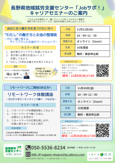 | 主催者 | 長野県地域就労支援センターJobサポ! |