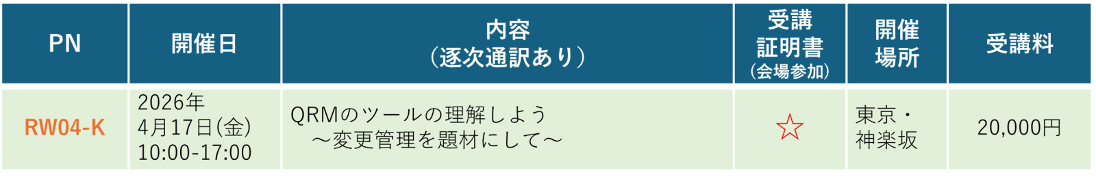 2026年4 月17日開催【会場】Dr. Kevin’s QRM Academy