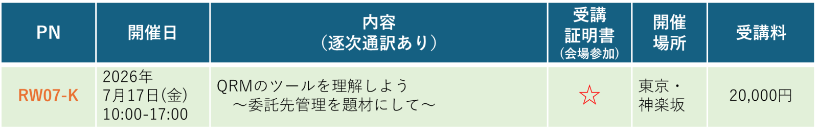 2026年7月17日開催【会場】Dr. Kevin’s QRM Academy
