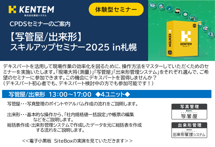 2025/12/9(火)PM【北海道札幌市】【写管屋/出来形】スキルアップセミナー2025 in 札幌