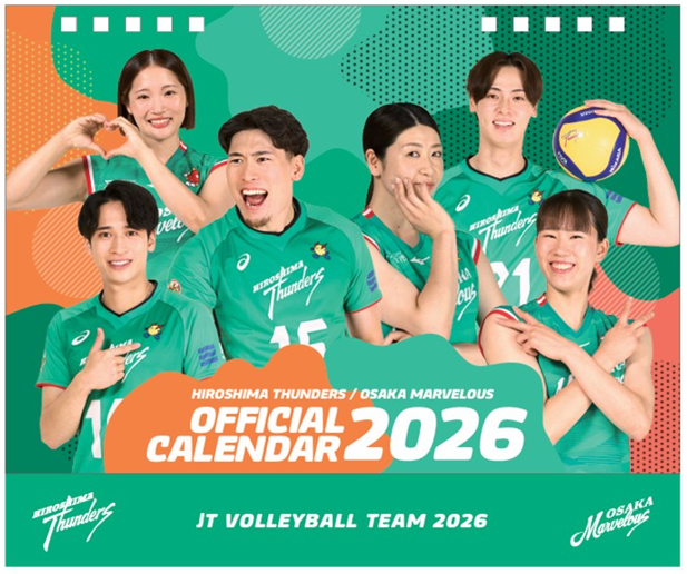 バレーボールの国内トップリーグで熱戦を展開している「広島サンダーズ」と「大阪マーヴェラス」から、日頃の声援に感謝を込めて「JT男女バレーボールチーム 2026年オリジナル卓上カレンダー」を抽選で10名にプレゼント。