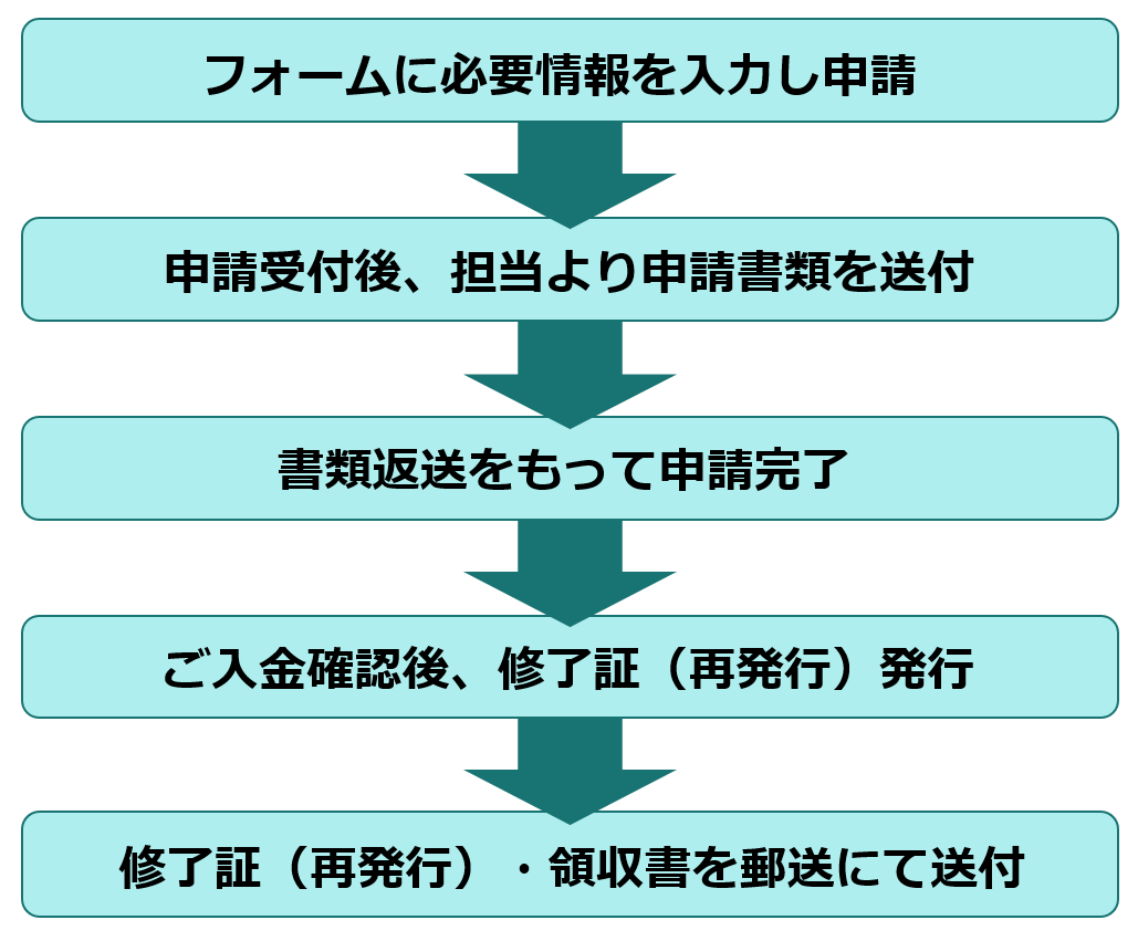 - 修了証の再発行期限は受講年度の翌年度の5月末までです。