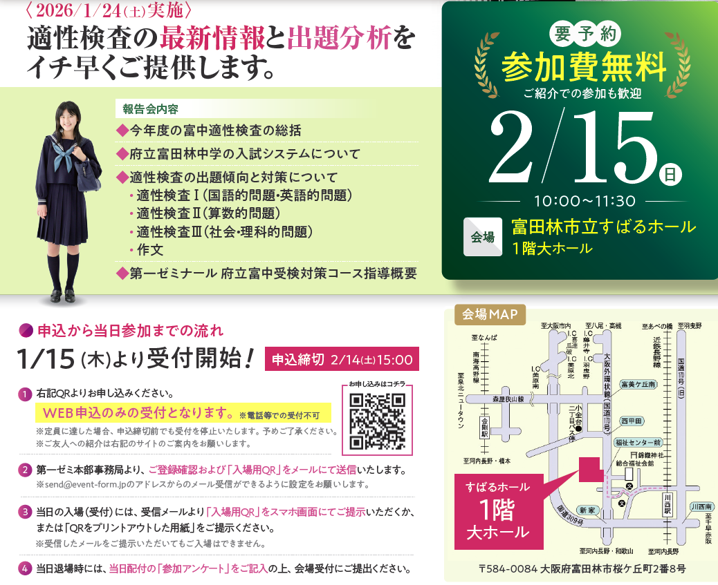 2/15(日)府立富田林中学校 適性検査分析報告会