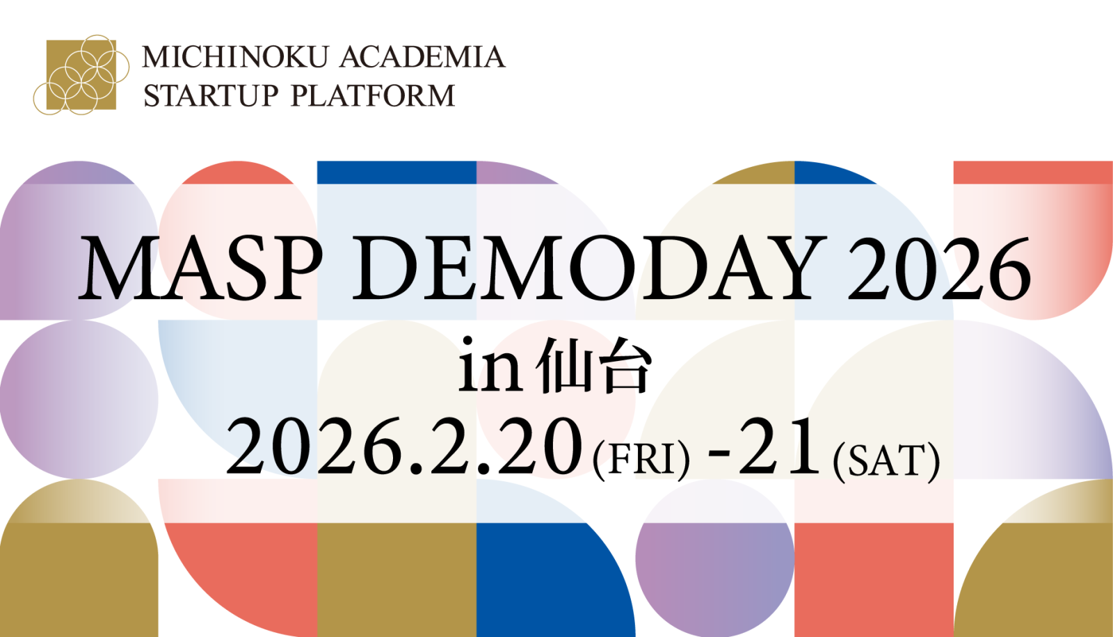 MASPでは、2025年度に採択したGAPファンドプロジェクトに対し、様々なプログラムやメンターを通して事業化へ向けた伴走支援を行ってきました。今回開催される「MASP DEMODAY2026」は、東京で2月5日(木)、6日(金)、仙台で20日(金)、21日(土)の計4日間にわたり、採択された各プロジェクトの成果発表の場と位置づけ、関係省庁や支援団体・機関はじめスタートアップ支援に関わる多くの皆さまに向けてご紹介すべく開催いたします。