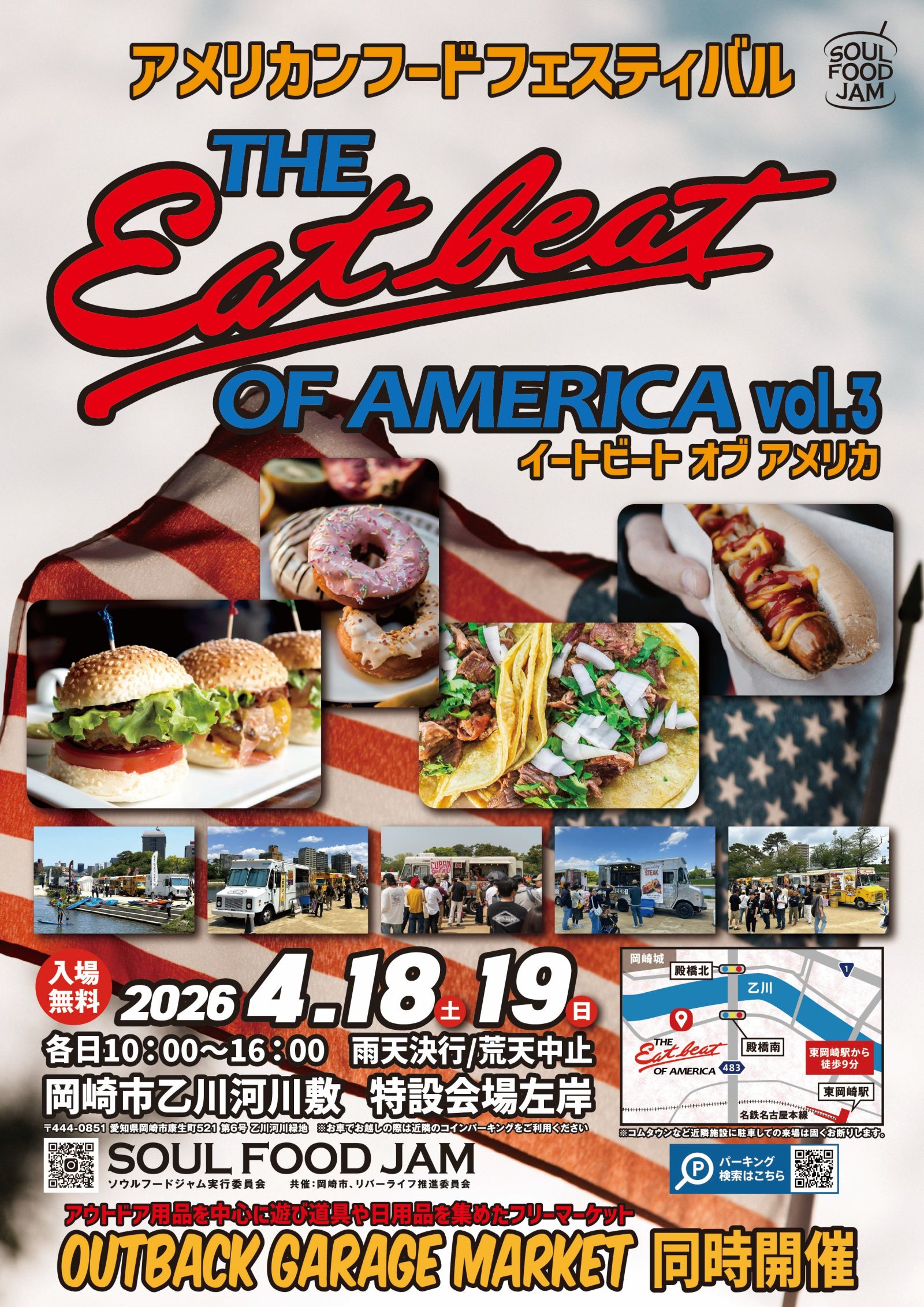 『The Eat beat OF AMERICA vol.3』 アメリカンフードが一堂に会する フードフェス「イートビート オブ アメリカ」を開催 本場アメリカの味を存分に楽しめるこのイベントでは、 ハンバーガーやステーキ、ドーナツなどなど 多彩なメニューが勢揃いします。ご家族やご友人と一緒に、 アメリカの食文化を体験しにぜひお越しください!![]()