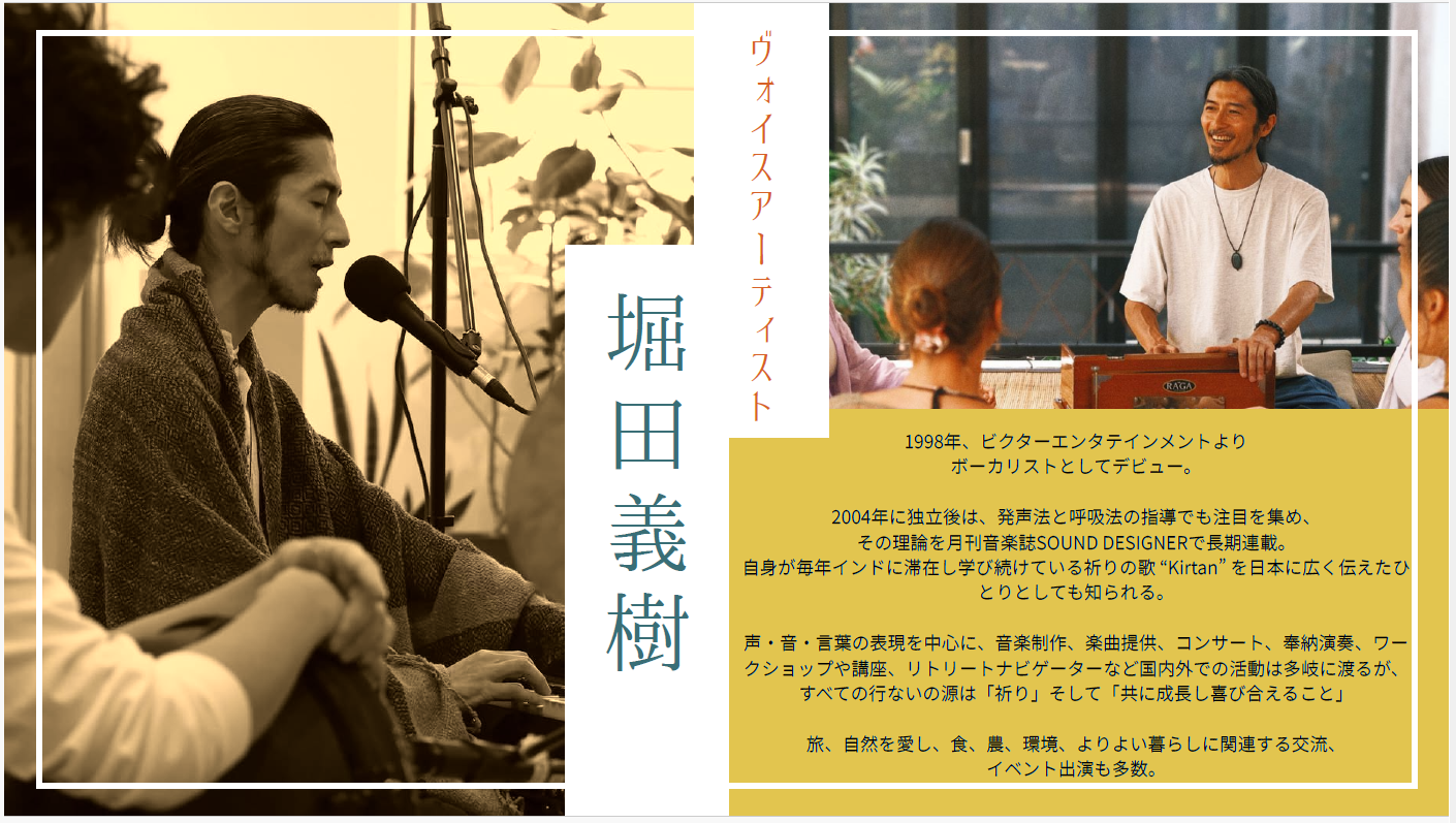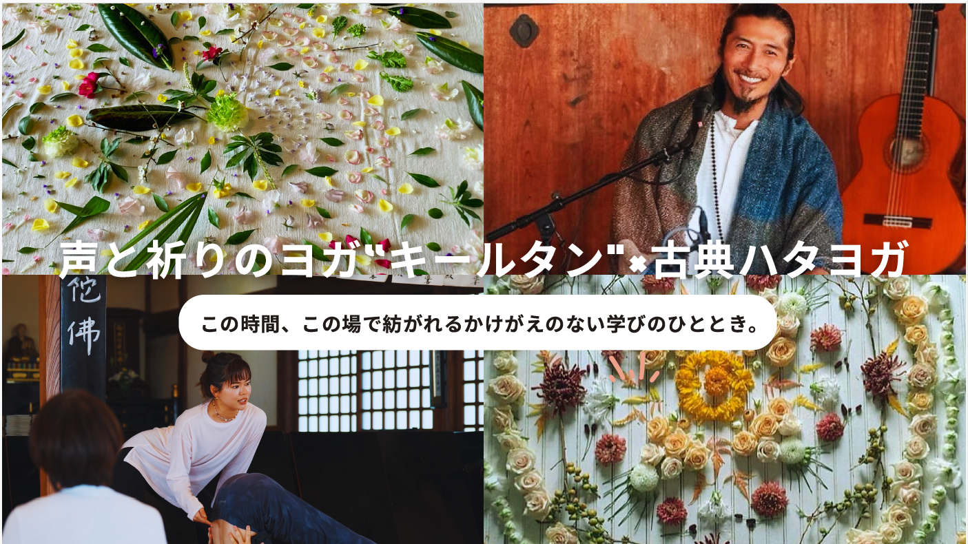 インドで学び続け日本にキールタンを広めた第一人者・堀田義樹先生とハタヨガ指導者・矢後恵莉佳による、この時間、この場で紡がれるかけがえのない学びのひと時。
