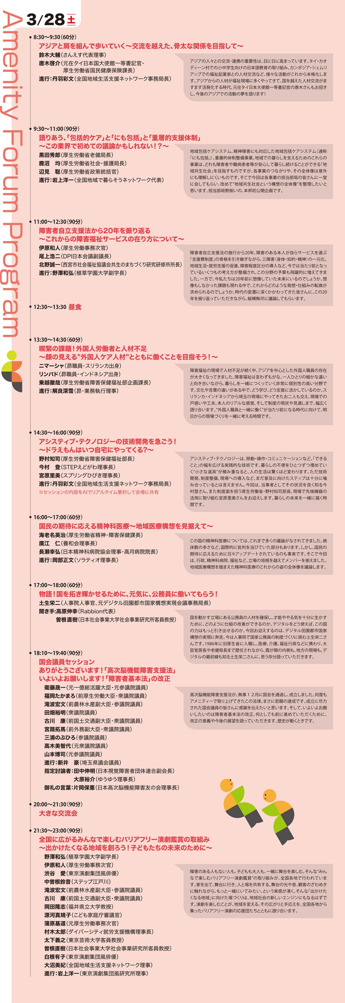 第29回となる今回は、「新しいアメニティーフォーラムを皆さんへ」をテーマに掲げ、会場も新たに、これまでの積み重ねを大切にしながら、次の時代に向けた実践と対話の場をつくっていきます。人口減少が進む社会の中で、障害のある人の暮らしをどのように地域で支え続けていくのか。利用者の生活の質の向上、地域移行を支える仕組み、そしてこれからの社会保障のあり方について、現場と制度の両面から議論を深めます。