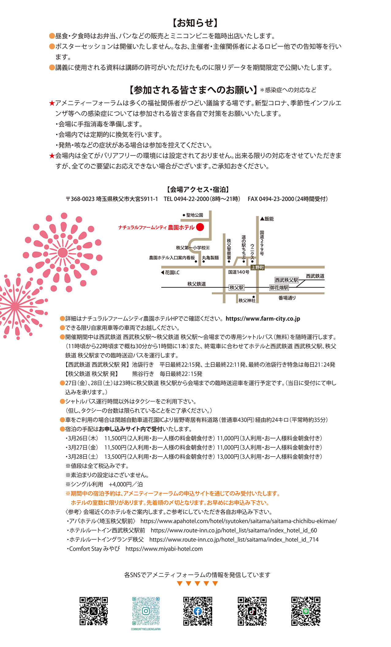 来る2026年3月27日(金)から29日(日)までの3日間、埼玉県秩父市のナチュラルファームシティ農園ホテルを会場に、「第29回アメニティーフォーラム」を開催いたします。