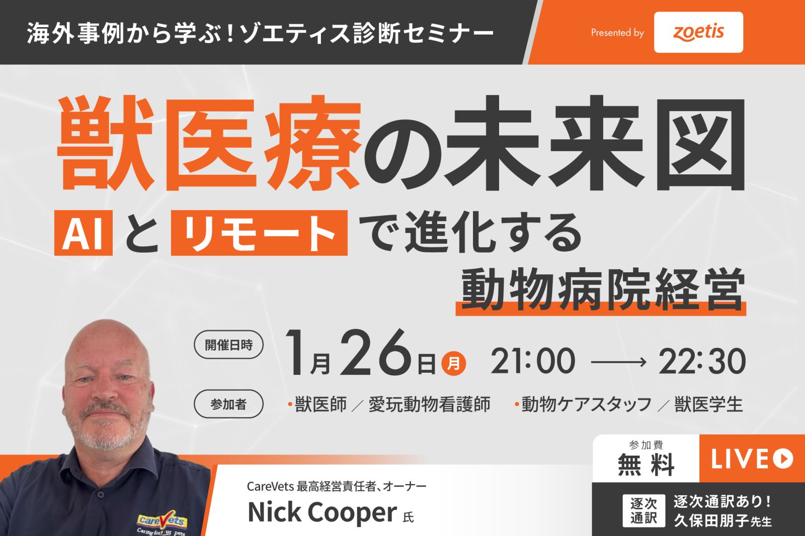 ゾエティス診断セミナー 獣医療の未来図~AIとリモートで進化する動物病院経営~ 開催のお知らせ