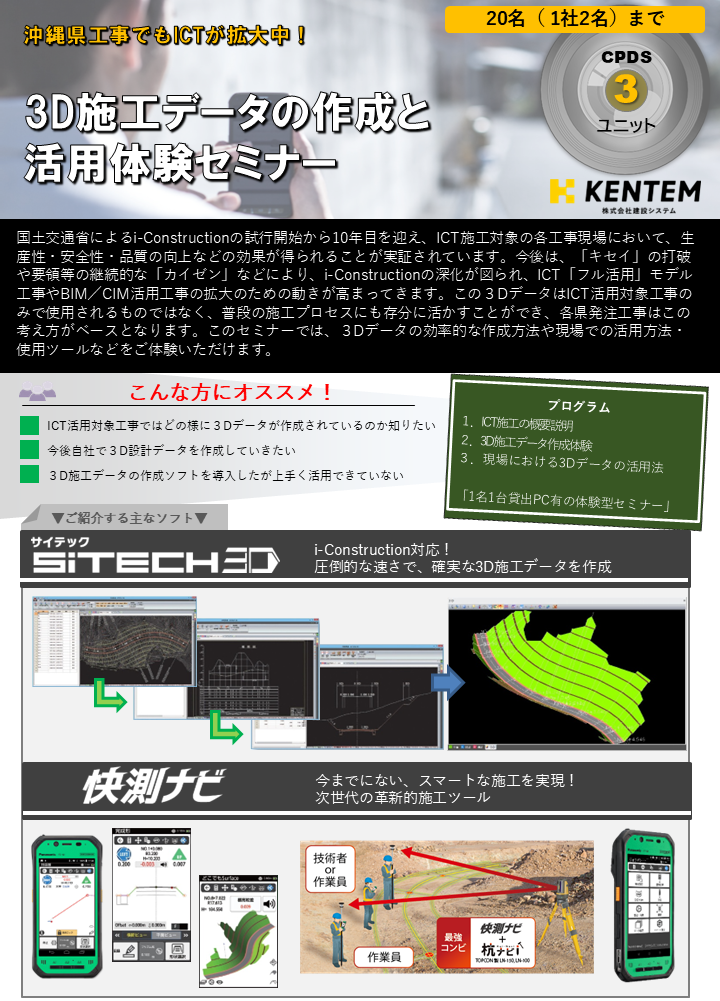 2026/02/17(火)【沖縄県沖縄市】3D施工データの作成と活用体験セミナー