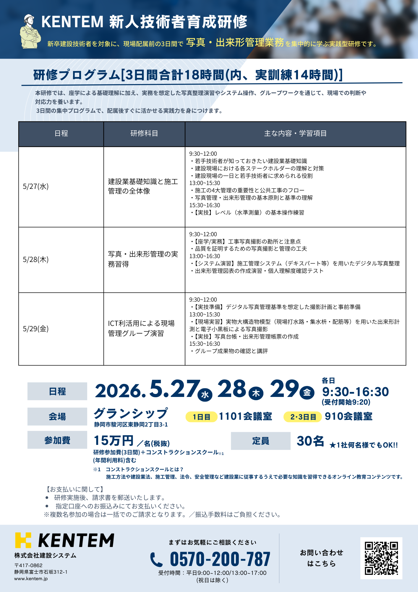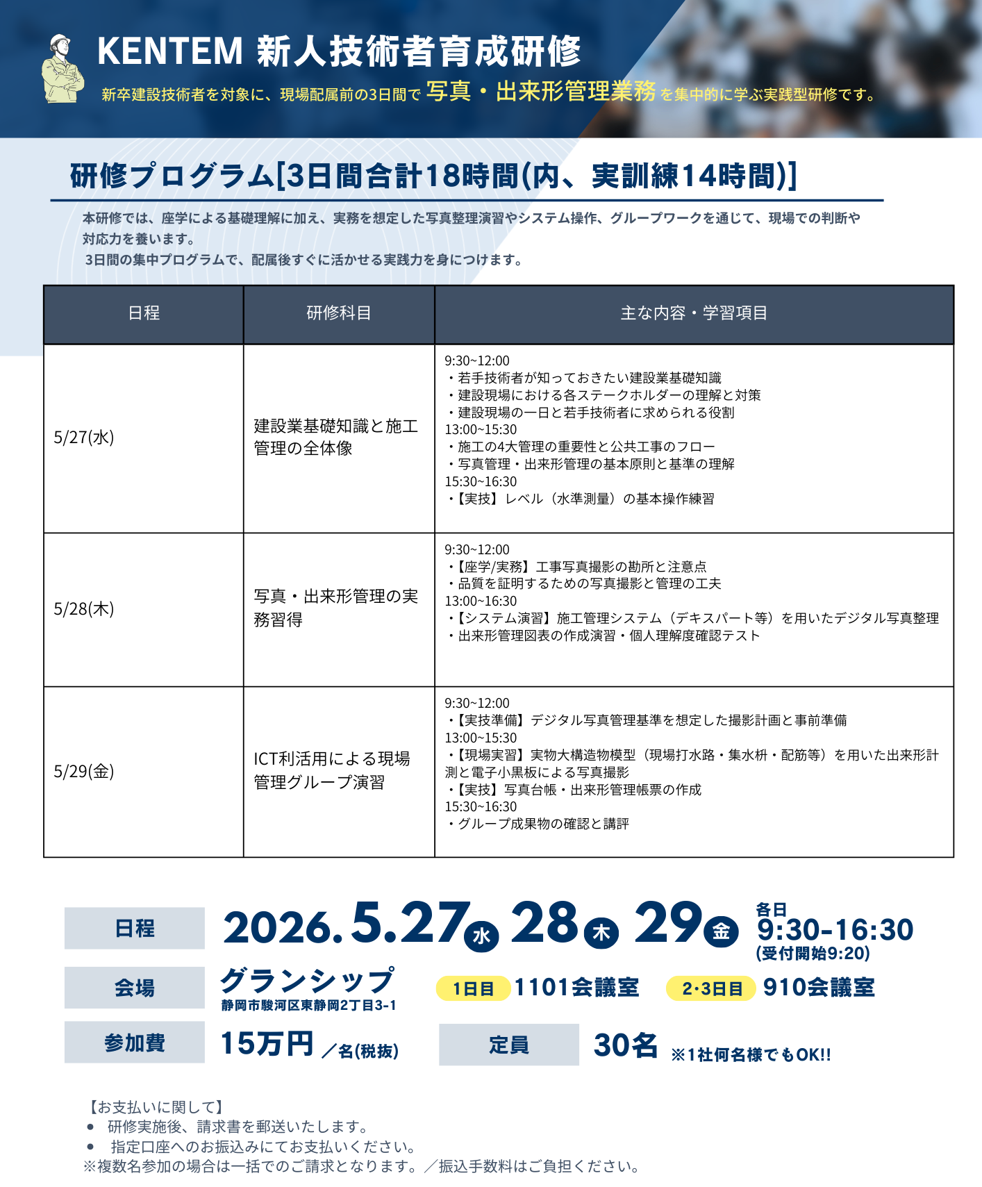 2026/5/27(水)~29(金)【静岡県静岡市】KENTEM新人技術者育成研修