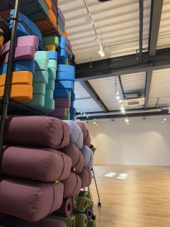 青山スタジオに揃う豊富なヨガグッズを活用し、お一人おひとりの身体に合わせて丁寧なアジャストとサポートを行います。