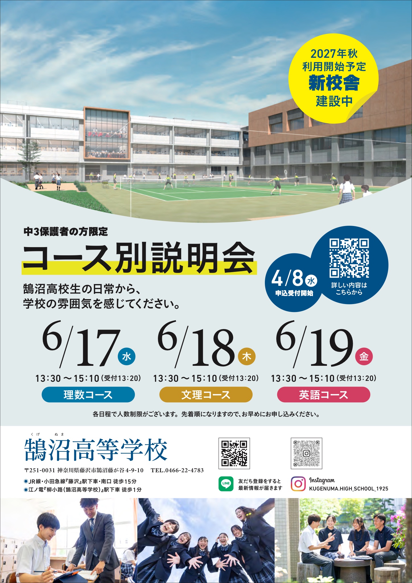鵠沼高等学校では保護者対象のコース別説明会を下記の日程にて実施します。