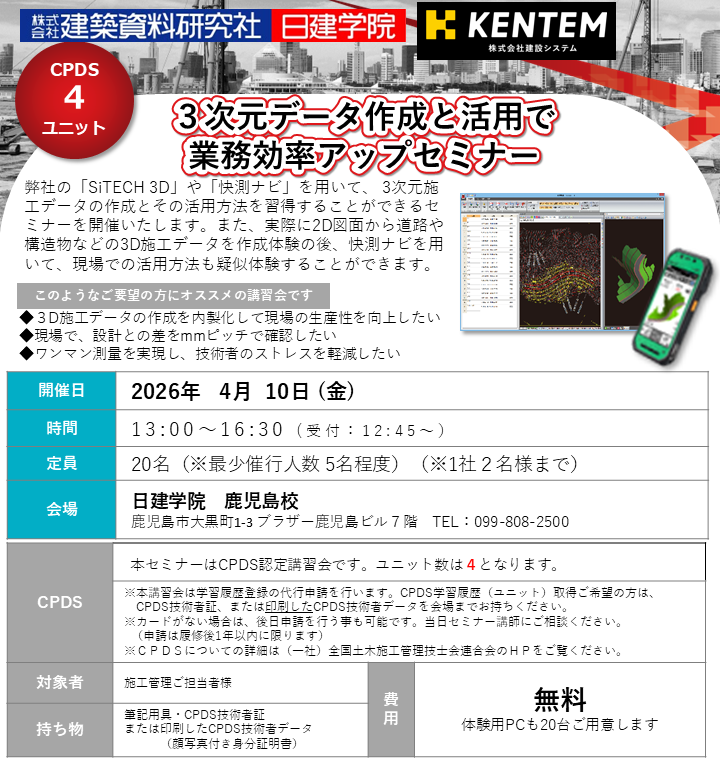 2026/4/10(金)【鹿児島県鹿児島市】3次元データ作成と活用で業務効率アップセミナー