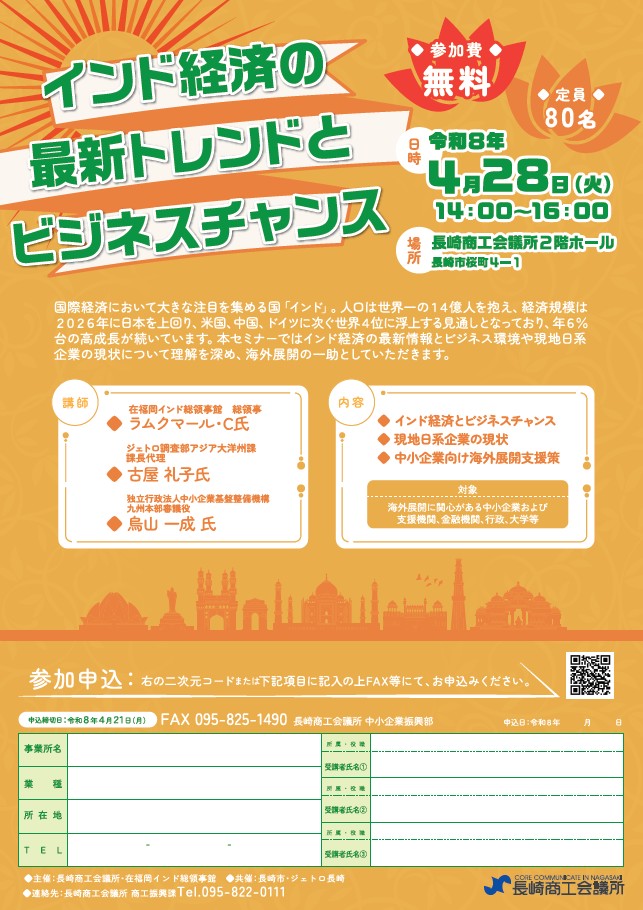 主催;長崎商工会議所、在福岡インド総領事館 共催;長崎市、JETRO長崎 |