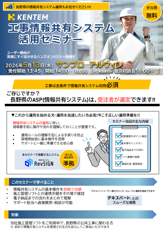 2026/05/13(水)【長野県松本市】【KENTEM】工事情報共有システム(ASP)活用セミナー