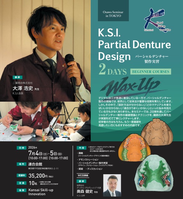 K.S.I. パーシャルデンチャー製作実習 2DAYS BEGINNER COURSES 7/4-7/5 東京