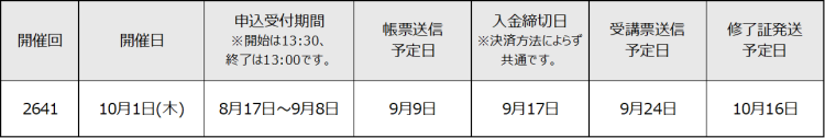 *入金締切日は開催回ごとに決まっており決済方法によらず共通です。