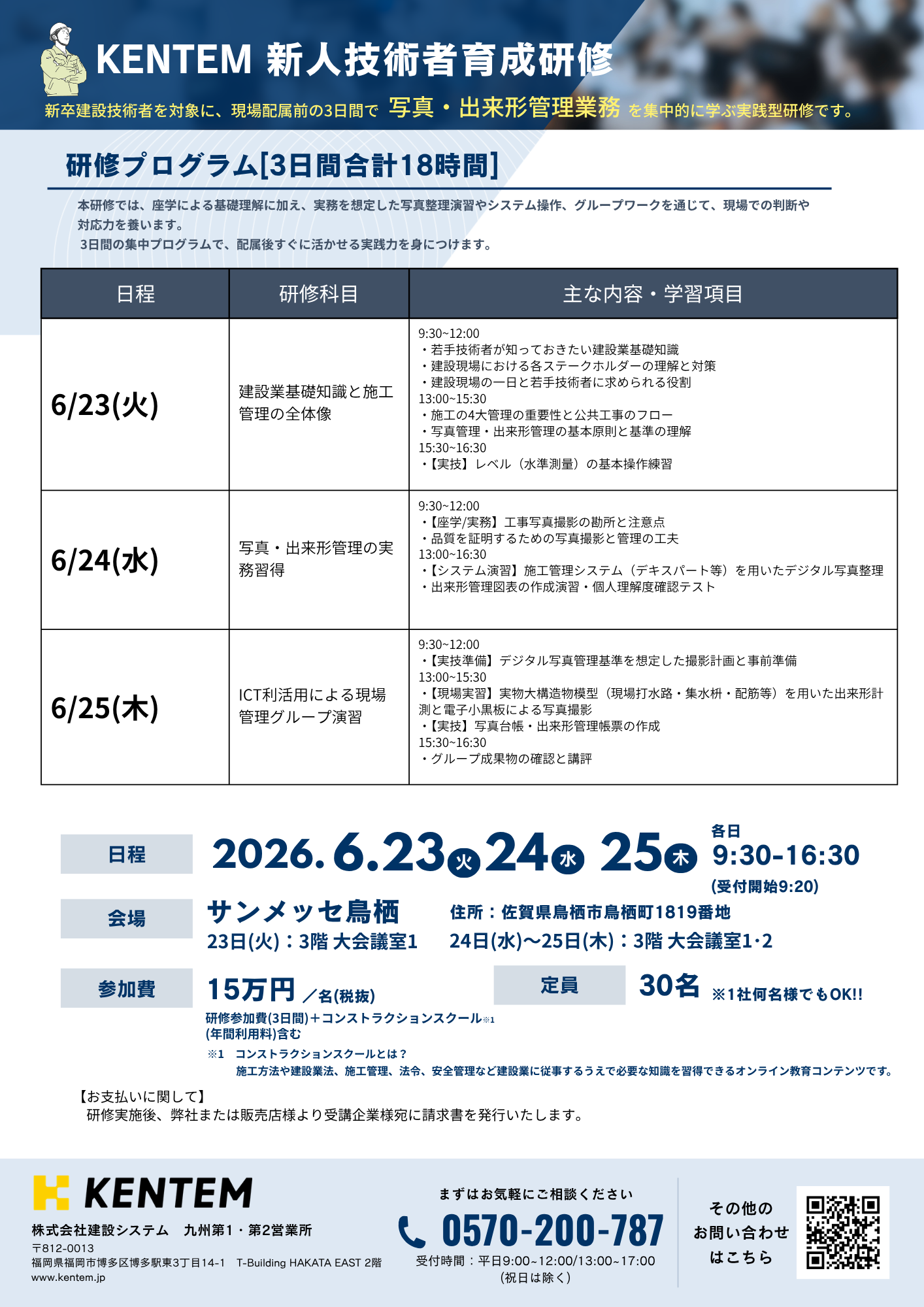 2026/6/23(火)~25(木)【佐賀県鳥栖市】KENTEM新人技術者育成研修