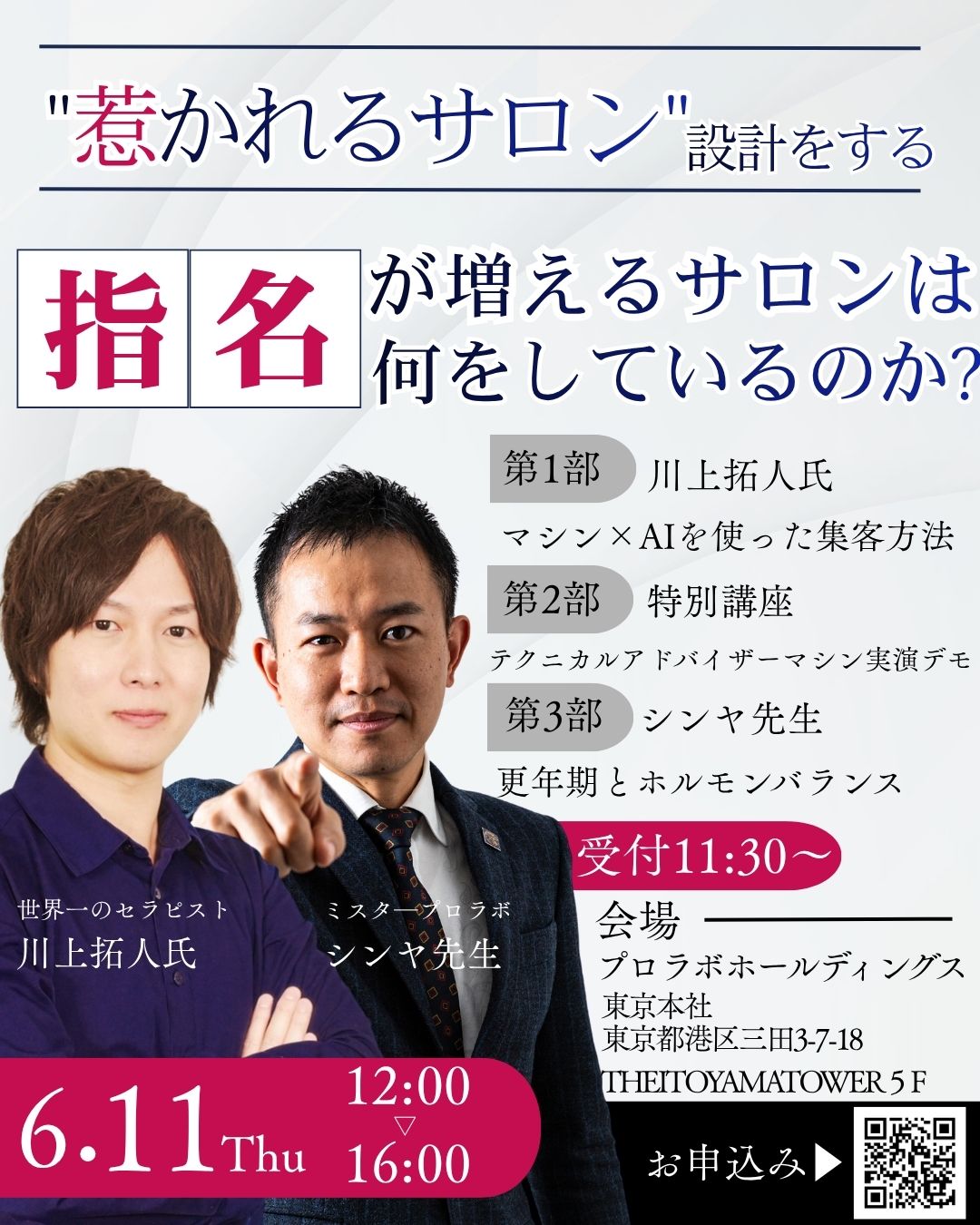本セミナーでは、サロン運営に欠かせない「指名」「技術」「専門知識」を3部構成で徹底解説。