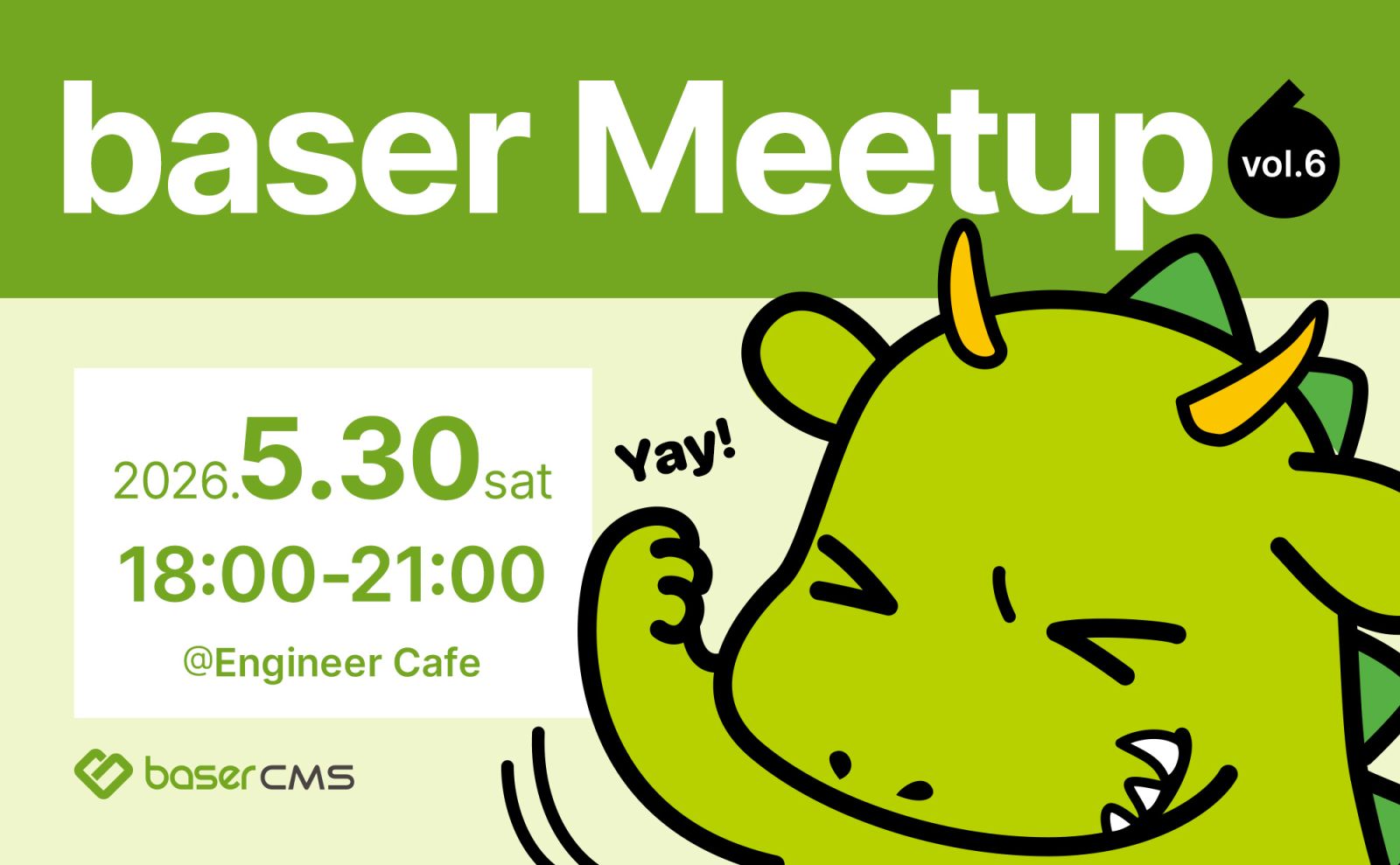 2026年もエンジニアカフェ(@福岡)で、5月30日(土)18:00よりコミュニティイベント「baser Meetup vol.6」の開催が決定!!