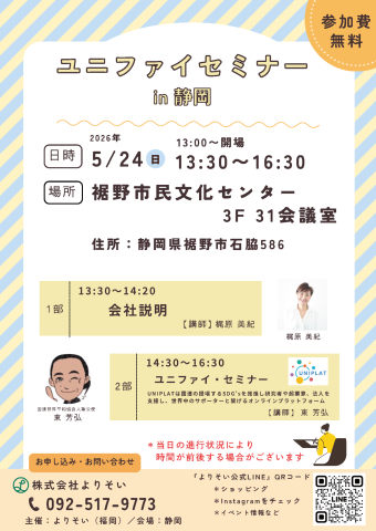 〈主催者〉 株式会社よりそい 問い合わせ先:092-517-9773 |