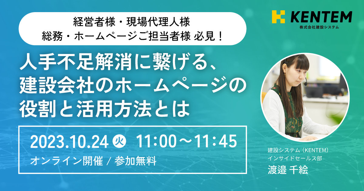 2023/10/24(火)11:00~ 人手不足解消に繋げる、建設会社のホームページの役割と活用方法とは